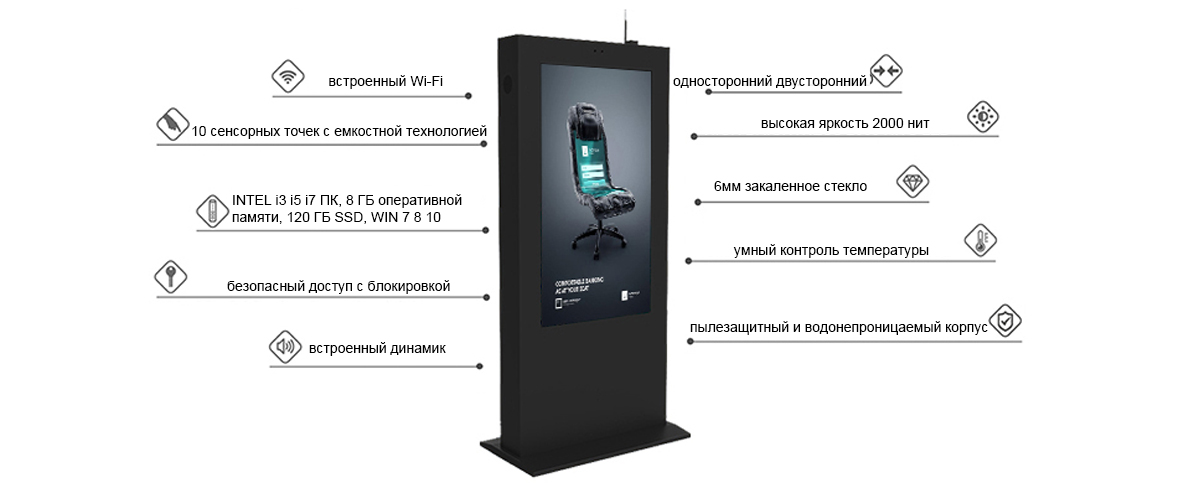 - Солнечный свет читается 1500-2500 нит. автоматический датчик освещенности